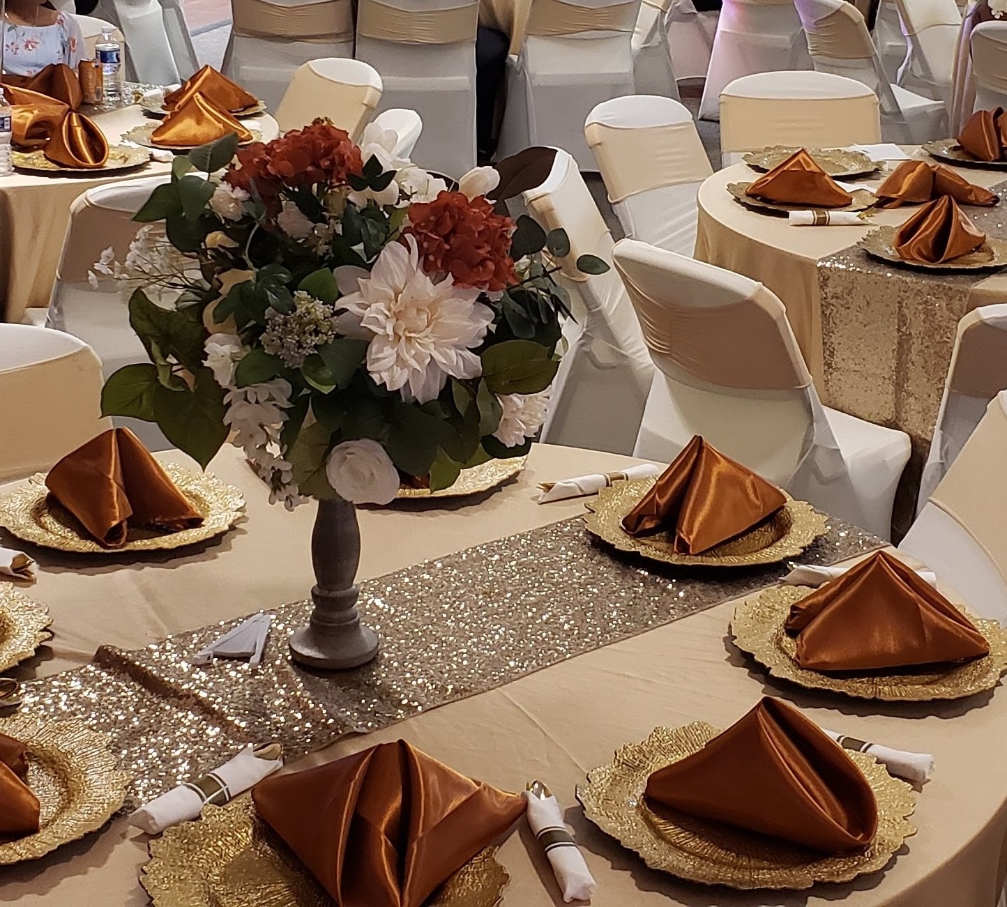 • Rectangle tables used for gifts, food, card/sign-in, cake, etc…