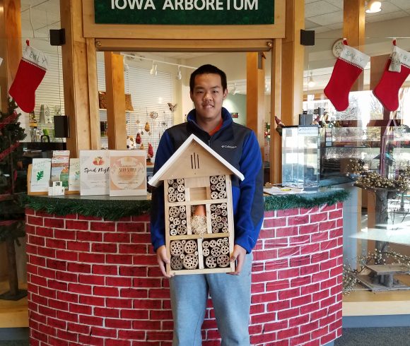 We appreciate all of the passionate community service dedicated towards wildlife across the arboretum over the years. Boy Scouts of America Eagle Scout Projects have focused on habitat enhancement in our gardens including nesting boxes for wood ducks and hotels for mason bees. The Iowa State University Horticulture Club has completed several service projects in our woodlands creating slash walls for small mammal and bird habitat. We’ve been the recipient of generous donations of bird seed, bluebird boxes, and kestrel boxes and we greatly appreciate the support! Reach out to info@iowaarboretum.org if you are interested in working with us to support wildlife.