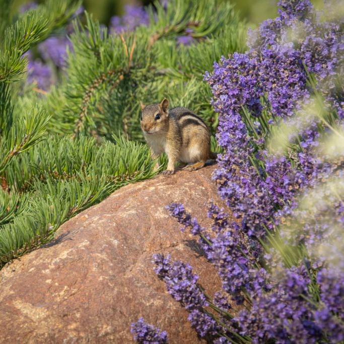 In general, we encourage mammals to live in and use our gardens. Small mammals are a vital part of the food web, managing insect pests and weed seeds while feeding birds of prey and larger mammals. Strategies to keep them out of certain areas include planting species with repellent qualities (like alliums or mints), using species with extensive root systems, or even cutting specific gardens back in the fall to remove winter shelter. Planting plants grown in large containers can make them more resilient to rabbit damage, and some plants become unappetizing at a certain size. Even learning and cataloguing plants herbivorous mammals don’t like can help! Locating bird feeders away from garden spaces can lessen the impact that scavenging mice or chipmunks can have, and relocating dried seed heads to someplace where birds can reach but rodents can’t can make your garden beds less attractive. Moles dislike digging through plants with strong root systems, so surrounding your lawn with plant-packed gardens can help exclude them.