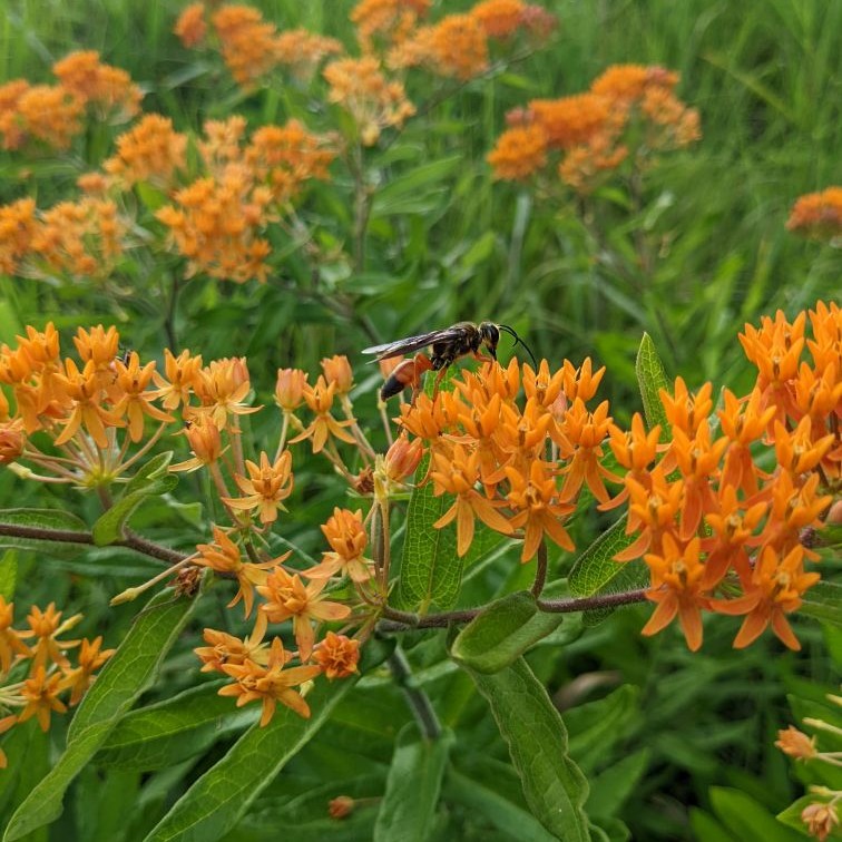 As part of our commitment to attracting and protecting insects, the arboretum has made great strides in building habitat, diversifying our gardens, and choosing to use management practices that keep pollinators safe. Across our native woodlands and prairie restorations, we’ve adopted management strategies that encourage plant diversity. This includes creating spaces with richness of flowering forbs, tree management based on levels of ecological function or importance, and burning on schedules that leaves habitat adjacent to burned areas. We also burn on a management rotation and times or year that encourage the greatest floral abundance in subsequent years.