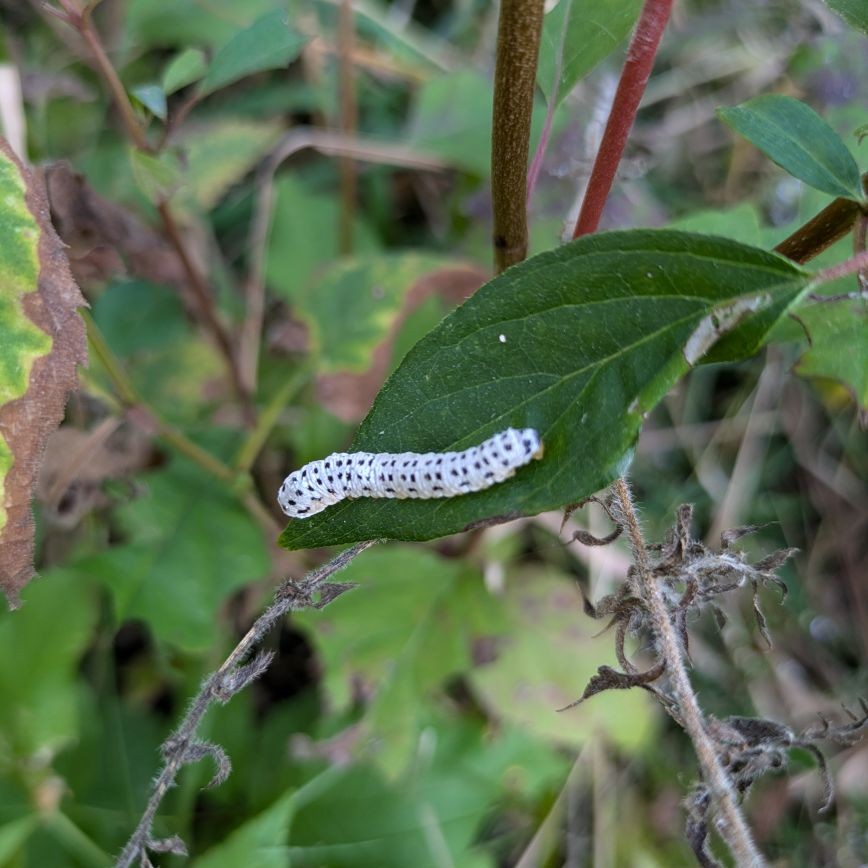 In our gardens and plant production areas, we only manage insect pests as a last resort. Most pest species cause an aesthetic problem rather than a plant health one, and natural regulation like predators and parasites make it so we rarely have to intervene. When we do have to intervene we opt for manual removal of the pest or utilizing biological controls. There are thousands of insect species that host on a great majority of our plants, so insecticide isn’t an option.
